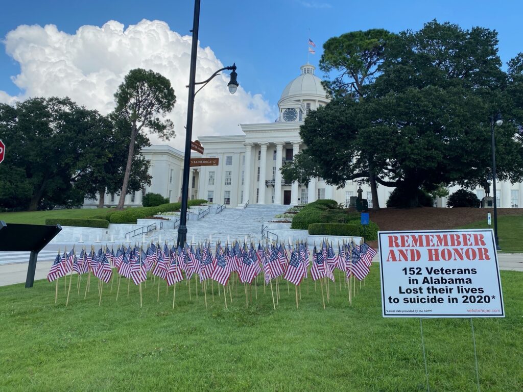In September 2023, the display will include 143 flags to honor and remember the 143 Alabama veterans who died by suicide in 2021. In 2022, there were 152 flags for veterans lost their lives to suicide in 2020.